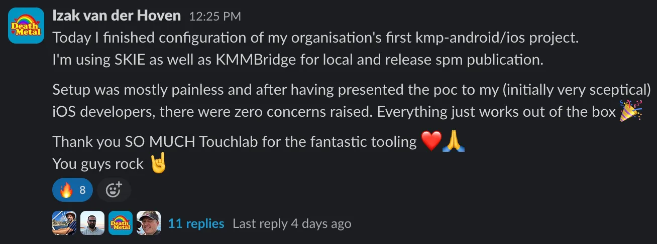 Touchlab publishes several critical libraries and tools for native mobile teams using KMP, some of which are referred to in JetBrain’s official documentation.